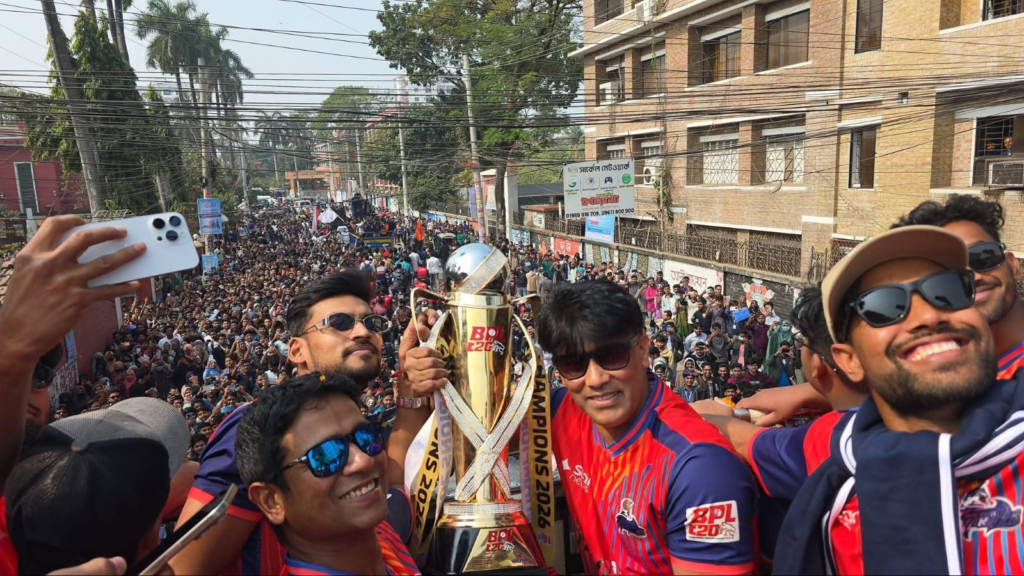 এ সময় মুশফিকুর রহিমসহ দলের খেলোয়াড়রা সমর্থকদের উদ্দেশ্যে হাত নেড়ে শুভেচ্ছা জানান। শিরোপা জয়কে রাজশাহীবাসীর ভালোবাসা ও সমর্থনের ফল বলে উল্লেখ করেন তারা। খেলোয়াড়দের উপস্থিতিতে শিক্ষার্থী ও সমর্থকদের মধ্যে দেখা যায় ব্যাপক উৎসাহ ও আবেগঘন মুহূর্ত।